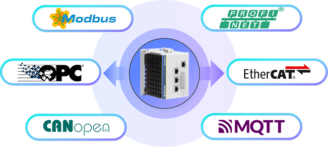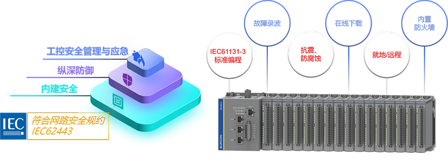 · 高性能CPU,工作主频x86四核1.9GHz,具有强大的运算和快速响应能力; · 采用多任务操作系统,支持周期任务、循环任务、事件任务、启动任务等多任务模式; · 支持在线下载、离线下载、联机调试功能,具有完善的在线下载安全机制,确保无风险的在线修改及维护控制策略; · 支持AI快速采样,8通道3ms采集速率,支持超低频PI计数; 支持固件升级、软件示波器、详细日志、故障录播等; · 提供完善的故障诊断安全机制,满足通道级的故障分析及预警,具备自动故障切除保护能力; · 支持HSC增量编码器,SSI绝对值编码器信号采集